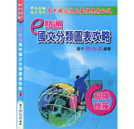 本公司特別禮聘建國中學黃淑真老師,精心編纂《e點通高中國文分類圖表攻略》。本書針對學測與指考的題型,共攬括80個焦點,重點由圖表統整,好記好用。並依據最新的考情趨勢編寫模擬試題,做全面性的整理與解析,幫助同學掌握答題關鍵,強化解題能力。