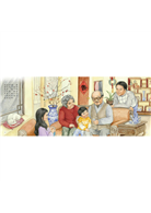 《春節》:第28到29頁,以「開門見喜」的春聯,畫出過年時人人穿新衣、戴新帽、放鞭炮的熱鬧場面,以及人們彼此拜年、喜氣洋洋的現象。