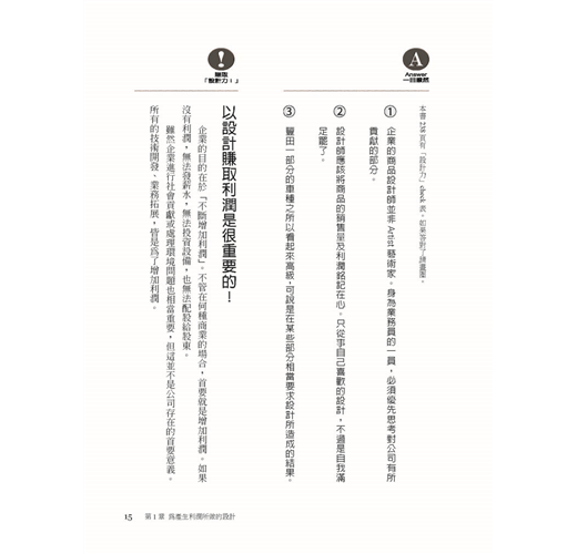 將商品設計交由設計師負責的時代已經過去了。 如今,經營階層對於設計若是沒有明確的想法,不僅無法產生利潤,更有可能危及到公司的生存。所謂的設計,即可謂「將企業的強項,以色彩及具體形態表現出來的東西」。將企業的「強項」以商品設計表現出來,藉此將「這項商品具有如此的價值」、「想要給這些人使用」等訊息傳達給使用者,即為設計扮演的角色。這也跟公司的利潤息息相關。