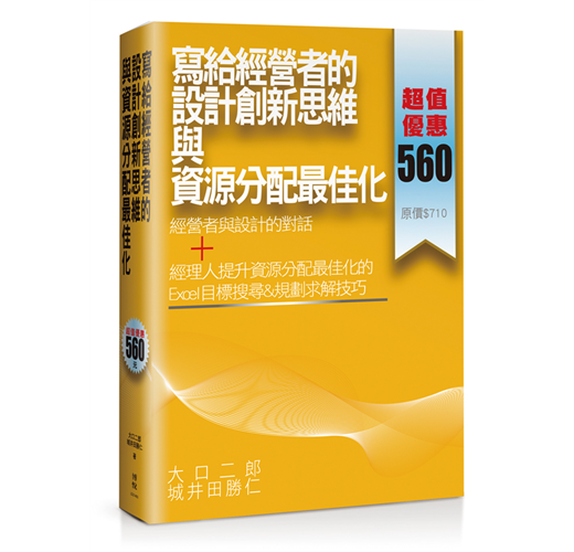 本書特別精選《經營者與設計的對話:寫給經營者與管理人的設計創新思維》與《經理人提升資源分配最佳化的Excel目標搜尋&規劃求解技巧》這兩本以管理者、經理人必備的創新思維與資源分配為主題的套書嘉惠讀者。透過大量的經驗分享與案例實作,讓您從本套書中,練就精湛嫻熟的經理人必備技能。