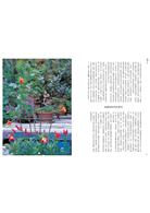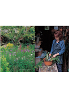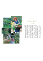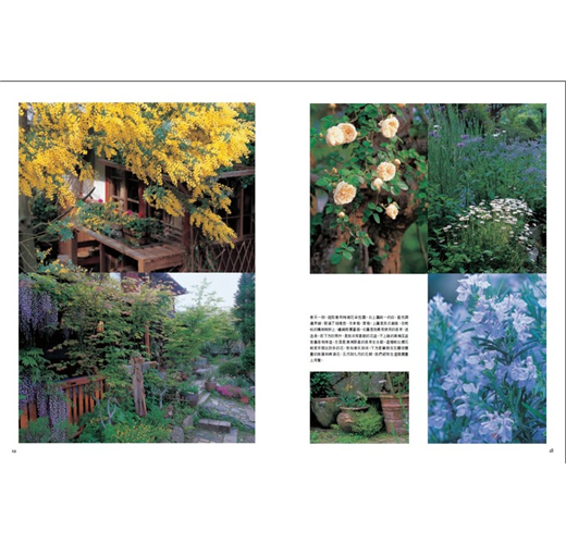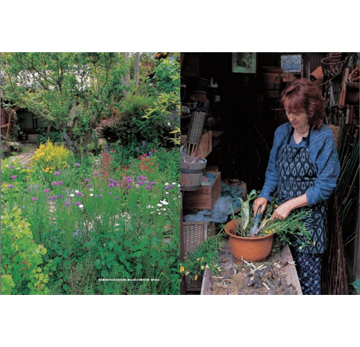 來到大原,當我決定在家的四周建造庭園時,便決定要將這個庭院,打造成讓我能夠回憶起童年時期玩耍於其中的大自然。庭院有四十坪,不算寬敞,我將它分成七個部分。玄關前日照、排水良好的一角,我種上了薰衣草及百里香等地中海香草,像是南法的鄉村。庭院的中心部分,是原本就有的日本庭園,栽種了氣質相襯的茶花和日本香草。旁邊,是種植了英國古典花卉及香草的英國風農舍花圃。然後,我在巨大的月桂樹下,裝設了木製的鞦韆,命名為森林花園(forest garden)。經過狹窄的通道繞進後院,那裡就像是西班牙的小院子。我在原有的水井上以陶器鑲上馬賽克,並種上適合這塊強烈西曬空間的、顏色鮮豔的花。在裡面的角落,則鋪上了磚,擺上桌子,讓我們在黃昏時可以喝喝紅酒或是烤肉。這裡只種植白色、玫瑰色、紅色等紅酒顏色的花卉。另外,在家前後的石圍牆的石頭與石頭之間,則栽種了百里香及紫花風信子等,打造植栽牆。
