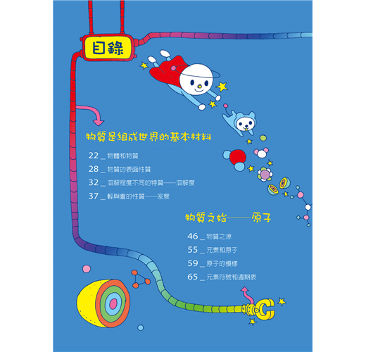 通過閱讀本書,相信大家已經能夠通過原子看到一個嶄新的世界了。看看自己的周圍吧,塑膠製成的遊戲機、玻璃製成的杯子、木頭製成的椅子、金屬製成的門、涼爽的水,還有看不到卻能感覺到的風⋯⋯這些所有物質的祕密已經盡顯在你的眼前。