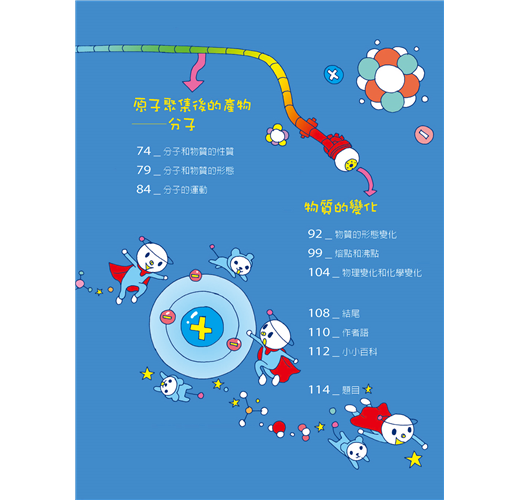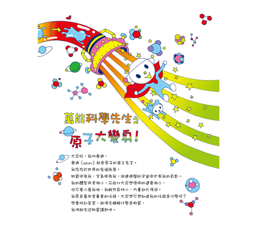 .這本神有趣的書籍結合了漫畫與小說的元素,從巨觀的生活開始帶入,讓學生感覺原子就在生活周遭,不再遙遠。帶我們走進原子的世界,探索看不到的領域。