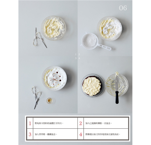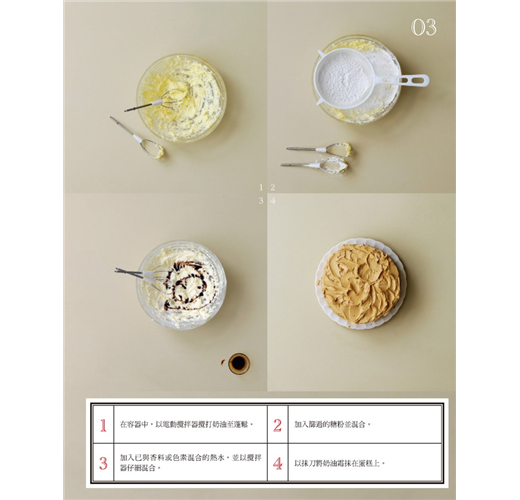 *全俯瞰作法分解圖,詳細解說蛋糕製作的各種技巧,步驟無盲點,輕鬆掌握所有過程。