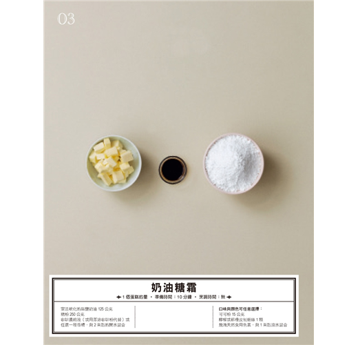 .第一章:烘焙工具與基礎材料介紹、分析蛋糕失敗的主要原因、基本糖霜與抹醬做法及蛋糕裝飾。