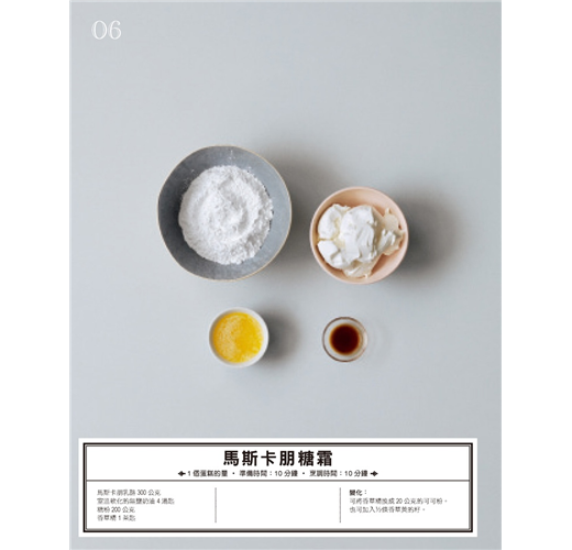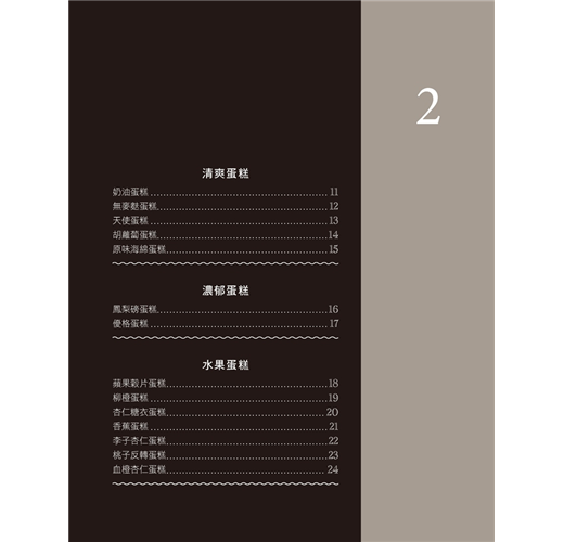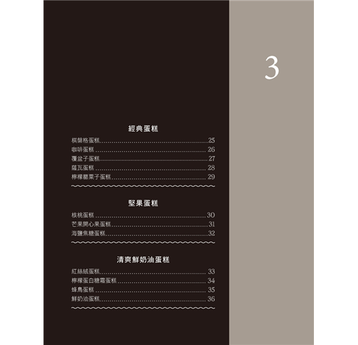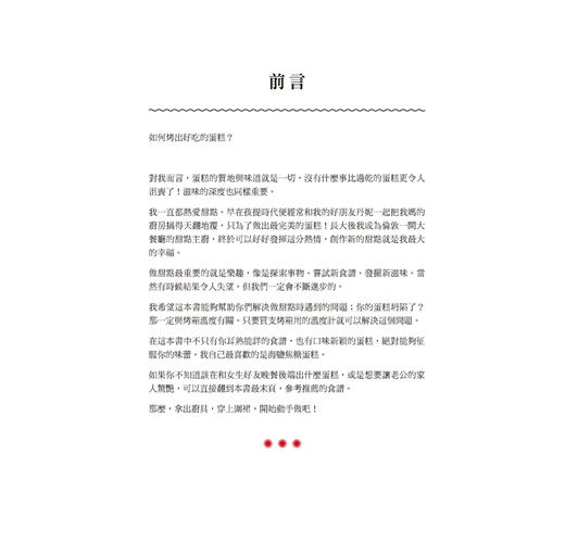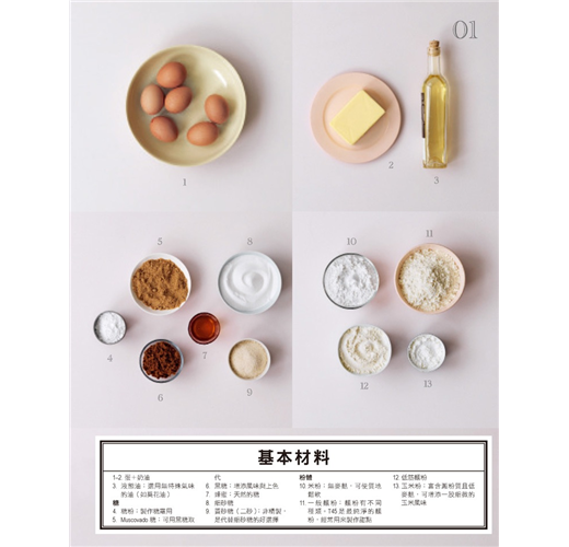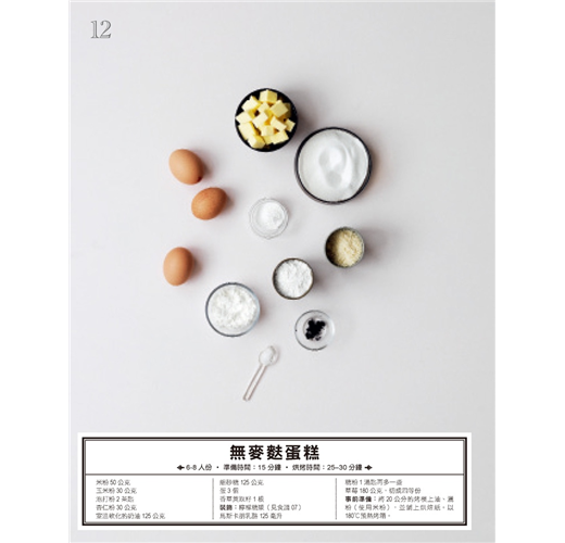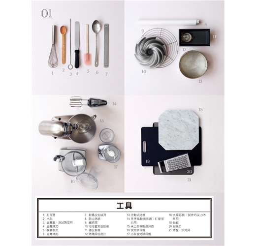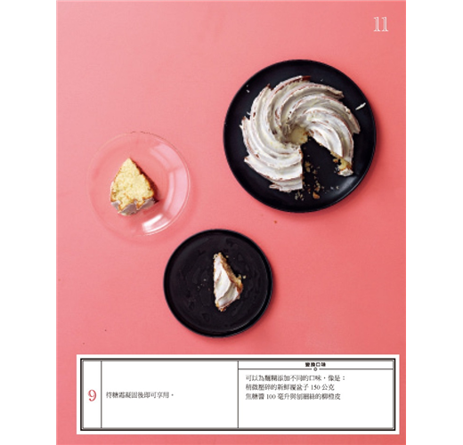 .書末附有專有名詞解說,解釋蛋糕製作的手法與材料特性。並依照不同主題/場合推薦適合的蛋糕,像是適合搭配早餐咖啡的蛋糕、可搭配下午茶的蛋糕、甚至是可以冷凍保存的蛋糕。