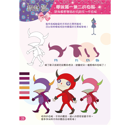 服裝設計教學x神奇模板x創意花色彩紙x配件貼紙