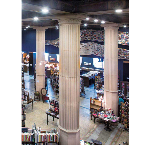 騎著自行車的白色少女馳騁在書架中央。里斯本舊印刷工廠裡的書店,時間正緩緩流逝著,而書中描寫的故事也在此自由地展翅遨遊。