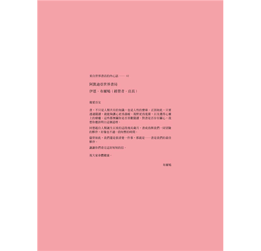 書中更收錄了書店職人們寫給作家、同業、讀者們的信,簡短字句,重溫人與書的美好牽引。