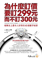 《為什麼訂價要訂299元,而不訂300元:破解史上最令人好奇的45個數字祕密》,是一本能讓你創造社交話題、更新把妹招數、提高生活效率、嚴格保密防諜的最佳教材;「你知道黑桃K的名字是David嗎?」、「你知道時鐘或手錶為什麼經常都展示在10點10分的位置?」當你看完本書,你可以輕鬆提起許多諸如此類的有趣話題;「A4直接放大成A3印刷吧!比例是一樣的不用修改!」也可以有效率應付這些生活上碰到的疑難雜症,這些數字都與數學無關,但是與你有關!