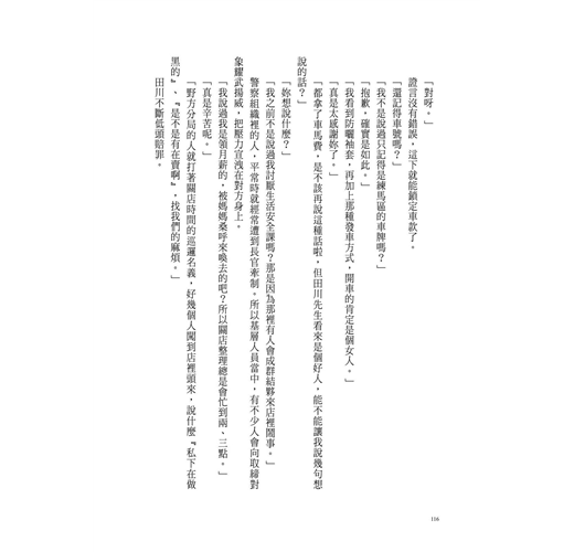 回頭一看,就見鶴田從別台車的背後衝出來。瀧澤語氣強硬地說道。