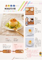 在涼拌菜色中,特別挑選適合做沙拉的帕米桑起司絲,設計出「白酌酒香雞胗佐柚香沙拉」這道別緻的日式前菜,清爽又好吃。在燉煮的料理中,則運用起司絲濃郁香滑的特色,做成「起司海鮮牛奶鍋」及「蟹肉起司味噌濃湯」。而微波調理,則是用洋蔥當成容器,做成小巧可愛的「微波起司洋蔥」。本單元會讓你很驚訝,起司絲原來可以這麼多變。