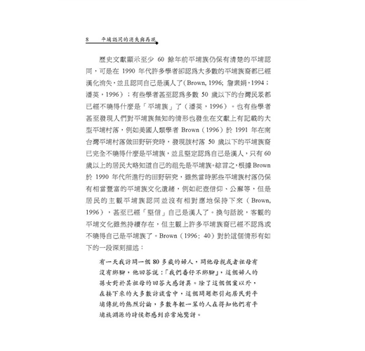 九○年代「平埔學」曾蔚為風潮,惟後來漸趨消寂,本書出版,在本土研究上意義深遠,作者為美國紐約州立大學水牛城分校社會學博士,對於平埔研究懷抱高度熱情,受東華大學原住民民族學院支持和施正峰教授鼓勵,卓然成書。這是研究平埔漢人極重要的著作,更是有意研究原住民文化或參加相關認證與研究所考試必讀之作。