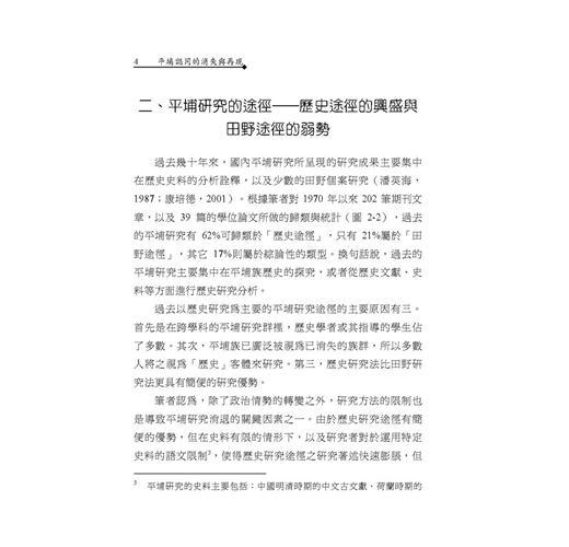 2. 平埔研究的途徑:歷史途徑的興盛與田野途徑的弱勢