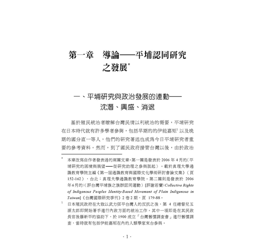 1. 平埔研究與政治發展的連動:沈潛、興盛、消退