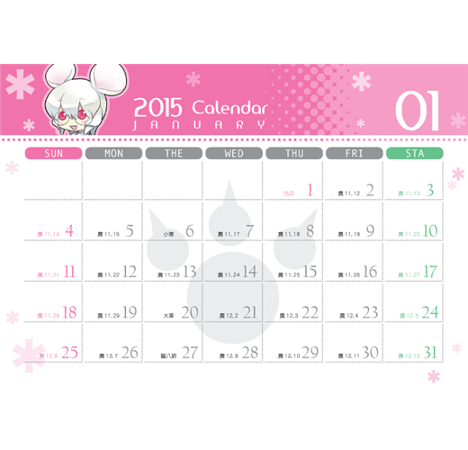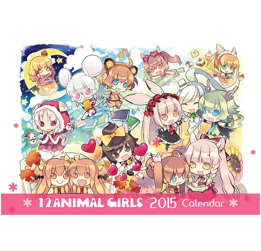 『12生肖』鼠、牛、虎、兔、龍、蛇、馬、羊、猴、雞、狗、豬+貓由各生肖代表各個月份,讓獸娘陪大家一起渡過2015年的每一天喔。除了桌曆外還特別附上兩頁明信片可以讓同好裁下做使用,另外還有戰部露老師特別繪製的燙金簽繪,更添具收藏價值。