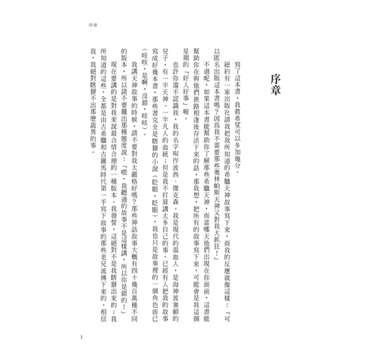 不過呢,如果這本書能幫助你了解那些希臘天神,並且等到哪天他們出現在你面前時,這書能幫助你在與他們狹路相逢之後存活下來,那我想,把所有故事寫下來,可能會是我這個星期的好人好事代表作喔。