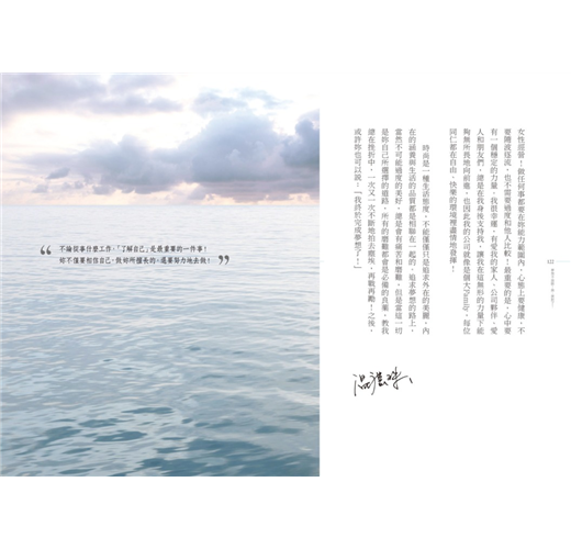 在二○一三年,放下了在臺灣習慣已久的舒適生活,來到中國大陸接任無印良品董事總經理一職,這從來不在我的人生規劃內。離開comfort zone(舒適圈),對任何人來說,都是困難的事。但我常覺得,必須給部屬比他能力稍為重一點的任務,因為如果太駕輕就熟,不太容易有精采的表現,人往往都是在最不安、困苦的狀態下,激發出潛力,產生最好的作品。隨著工作時間拉長,妳會累積一些工作經驗、資歷,漸漸形成妳的舒適圈。所以,不要忘記,要有自覺地不斷淬練自己,勇於接受各種挑戰。