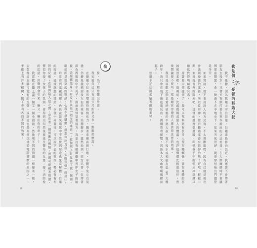 簡而言之,就是裸露。誠實地暴露自己的一切,不誇大也不矯飾,彷彿在畫布上塗抹顏色,讓一切看起來清晰無比。儘管這世上需要謊言,我亦是個喜歡說謊並偶爾耽溺其中的垃圾,但我仍然相信,有些事物必須誠實無比,例如寫作這一檔事。