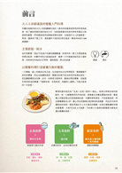 孩子的餐點著重於食材原味的烹調,溫和不刺激味蕾,並傾向使用繽紛色彩,大大提升餐點注目度,利用孩子喜歡的蔬菜來作主食材調味,讓挑食的機率下降。