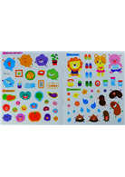 將貼紙貼上然後撕下,如此重複撕貼,在3-5歲幼兒遊戲過程之中亦能塑造心性與品格。利用圖畫裡的河馬、兔子、貓熊、大象等可愛的動物朋友們,可進行角色扮演遊戲。