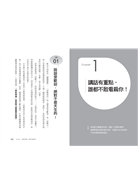 更多技巧配有圖解在書中完整呈現,不藏私的自信說話術,教你明確表達自己的意見,讓別人「無法拒絕」!