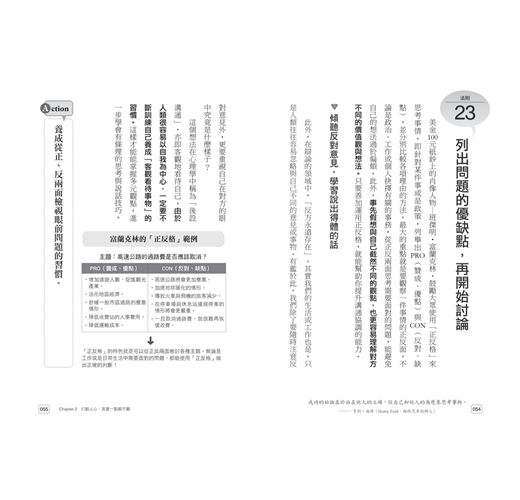 不論是政治、工作或個人抉擇有關的事務,從正反兩面思考需要面對的問題,可以避免自己的想法過於偏頗。此外,事先假想與自己截然不同的觀點,也更容易理解對方不同的價值觀與想法。只要善加運用功過格,就能幫助你提升溝通協調的能力。