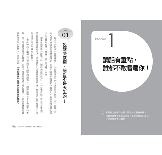 光只有文字未免太枯燥,別擔心,所有該注意的技巧及重點,皆用清楚的示意圖說明,搭配範例演練,你會發現,原來學會說話真的好容易!