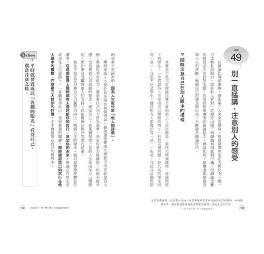 這個想法在心理學中稱為「後設溝通」,亦即客觀地看待自己。由於人類很容易以自我為中心,一定要不斷訓練自己養成「客觀看待事物」的習慣。如此一來便能掌握多元觀點,進一步學會有條理的思考與說話技巧。
