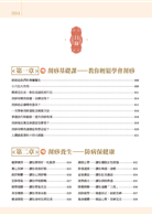 書中穿插「養生小妙方」、「小叮嚀」等,提供讀者改善病症的食療方,以及生活、心理層面該注意的小地方,讓保健養生更為面面俱到。