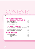 《國貿英語溝通術》全書精闢剖析7大國貿面向,藉由【單字片語一家親】、【好用句型】、【E-mail實務範例】、【電話對話實境】、【國貿知識補給站】、【《Dear Amy》時間 】等單元的設計,加強讀者的國貿知識、幫助讀者精通國貿英語,更能修鍊對內與對外的溝通技巧,使工作不慌不亂、篤定自在,輕鬆達成跨國協商任務!