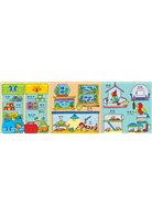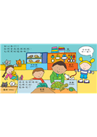 爸爸、媽媽可以與孩子共讀,也可以鼓勵孩子看圖說故事;陪伴孩子觀察書中每一個場景,指認圖像和單字,在親子互動中進行識字練習。熟悉書中物品和字詞後,爸爸、媽媽可以問:「兔子在哪裡?」「小狗在哪裡?」等,讓孩子在書中找出物品的圖案,增強認知能力與記憶力。認識中文字詞後,別忘了鼓勵孩子認識英文單字,孩子可藉由重複閱讀熟悉英文單字,在潛移默化中學習英語。最後,把書組成立體商店,爸爸、媽媽與孩子可以一起玩角色扮演和開店遊戲,透過遊戲替孩子營造良好的溝通情境,幫助孩子練習口語能力、發展人際能力。
