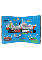 以漁船為例,書上有傳統到現代的各式船隻,你還可以打開漁獲加工船,看見魚從去鱗、清洗、切片到急速冷凍的流程。每一頁都有不容錯過的小細節!