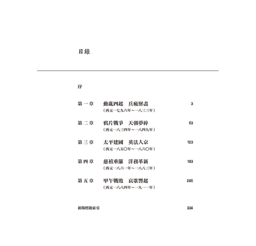 本書是《大清時報》中,繼「首部曲‧八旗建國」、「二部曲‧開創盛世」之後的最終曲,寫盡從乾隆退位成太上皇的一七九六年,到辛亥革命成功的一九一一年之間,曾經睥睨天下的大清帝國從當世富豪變成破落戶的辛酸,以及一次次與外人對抗所帶來的屈辱。依著緩緩奏出的悲鳴樂聲,將「三部曲‧帝國哀歌」分為「動亂四起 兵疲財盡」、「鴉片戰爭 天朝夢碎」、「太平建國 英法入京」、「慈禧垂簾 洋務革新」、「甲午戰敗 哀歌響起」五個部分。