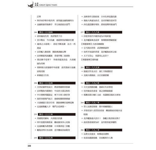 《大清時報》將清朝二百多年的歷史事件,分成「首部曲‧八旗建國」、「二部曲‧開創盛世」、「三部曲‧帝國哀歌」三部分來呈現。