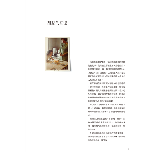 甜點抹上大量的鮮奶油,溫馨美好的下午茶就此展開! 由日本料理生活家.門倉多仁亞老師,依循小時候與德國外公、外婆生活的回憶,親自撰寫的德國家庭常見烘焙甜點,除了基本的食譜介紹,還有德國特有的甜點文化分享。