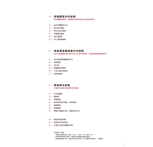 德國最著名的黑森林蛋糕、超有聖誕感的史多倫麵包和小朋友最喜歡的薑餅系列……等等40多種甜點食譜配方和技巧,還有覆盆子果醬以及蘋果泥的製作方式,一同感受來自德國最感動人心的幸福口感。