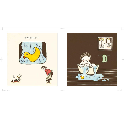 另外,也可以讓孩子進行比較,看看小主角原本穿在身上的衣物,和後來媽媽給他新衣新鞋有什麼不一樣?小主角長大之後還得到新的腳踏車,這輛車和原本騎的腳踏車有什麼不同?還有浴缸,小主角的小浴缸和媽媽用的大浴缸差別又在哪裡呢?為什麼它們會長得不一樣?藉著比較、問答、思考的過程,能夠提升孩子的觀察力以及想像力,讓閱讀不只是閱讀,同時也是學習和遊戲!