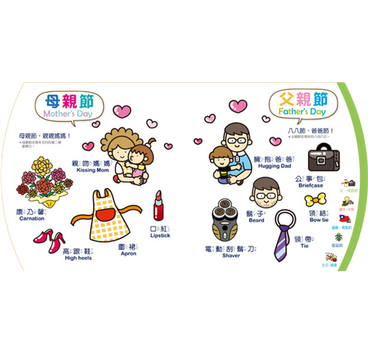 以十大主題做分類,在加上中/英圖像對照,提升幼兒的雙語能力。