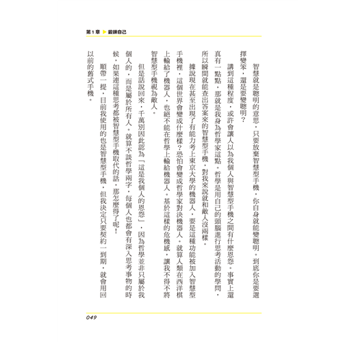 簡單地說,一切都在於自己對事物的思考方式,思考方式才是最重要的,所以需要用到哲學!畢竟哲學是思考的寶庫。本書將參照各種哲學睿智,說明能幫助大家讓人生變有趣的方法。