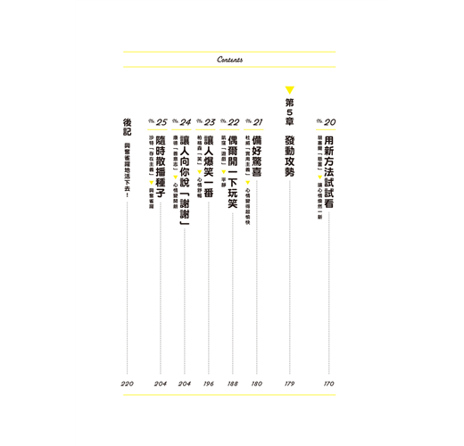 換句話說,只要自己準備開心的事、有趣的事,心情就會變好,本書就是要幫助大家達到這個目的,所以提出各種有用的建議,只要稍微下點工夫,就能讓自己變開心,覺得人生很有趣。