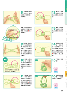 本書的翻花繩作品收錄入門、初級、雙人、中級、高級等五大單元,除了單一作品的呈現,也有如魔術技巧般&可以重覆玩要的作品唷!翻花繩的玩耍過程就彷彿解開數學題目一般,充滿了探究&解迷般的樂趣;從簡單的作品開始,到慢慢加深難度的作品,請你都試著挑戰看看吧!