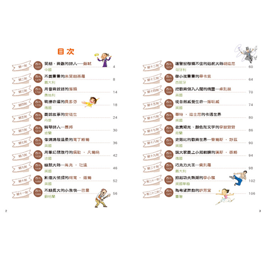 4.本書涵蓋古今中外對人類生活有特殊貢獻的名人,並依照人物的出生年分為編排順序,是一本適合大小讀者閱讀、全班共讀、親子共讀的優良讀物。