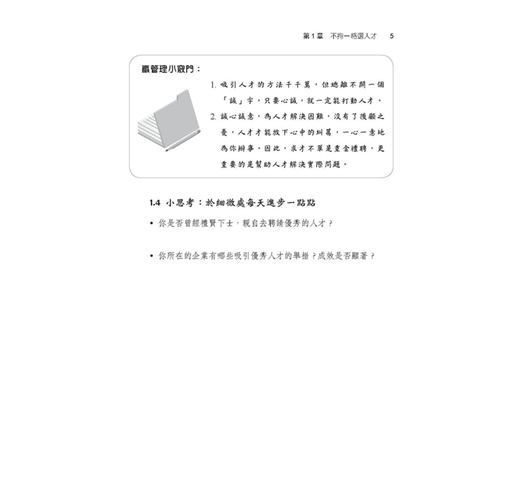 讓他知道不足的地方、主管要以身作則、讓員工相信:我可以……。