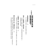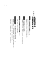 ◎全書共分六個章節。前三章,偏向觀念解析,告訴讀者何謂「筆記」的意義、哪些才是值得製作筆記的重點、如何保持製作筆記的動力、如何有效率地記下說話者的內容重點等。後面三個章節,則在告訴讀者如何有效吸收筆記內容,包括工具的選擇、架構的安排、如何加深自己對內容的印象等。