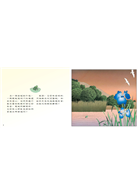 有一天,她下定決心,帶上她最愛的荷葉,跳阿跳阿朝著海洋前進。