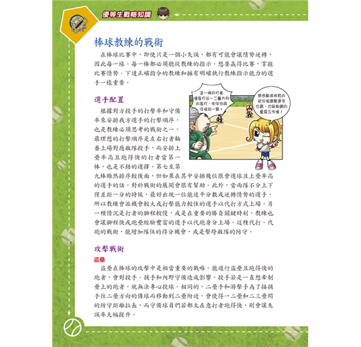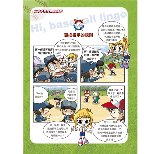 閱讀了《會讀會玩!棒球優等生》系列後,你是否也感覺自己與故事裡的主人翁一同奮戰努力呢?在體會到棒球是必須經歷這麼多訓練和努力,才有機會在場上爭取勝利,是否也感受到努力的過程比一時的勝負更讓人開心呢?希望每位小讀者都能把棒球的精神落實在生活當中,時時刻刻努力精進,與同學們相互鼓勵合作,往自己設定的目標勇敢邁進!