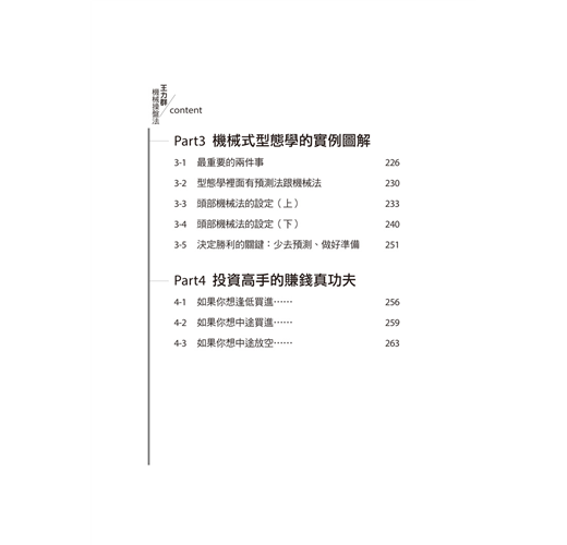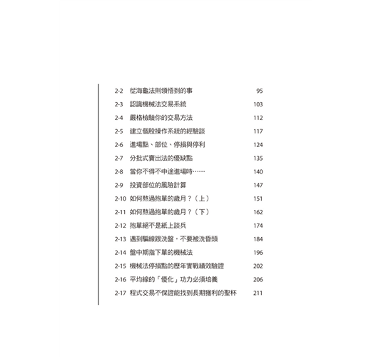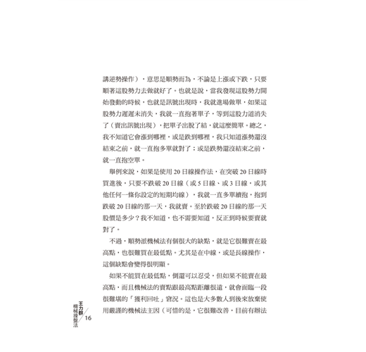 我寫了這本書。希望大家從本書眾多的文章中能夠深入體會「機械式」與「預測式」操盤法是各有其優缺點。只是對股市中絕大多數缺乏預測能力的人來講,機械式操作法才是真正的學習起點,而非預測法。