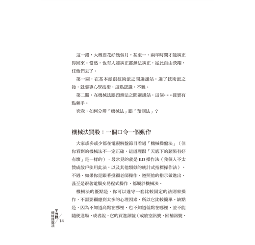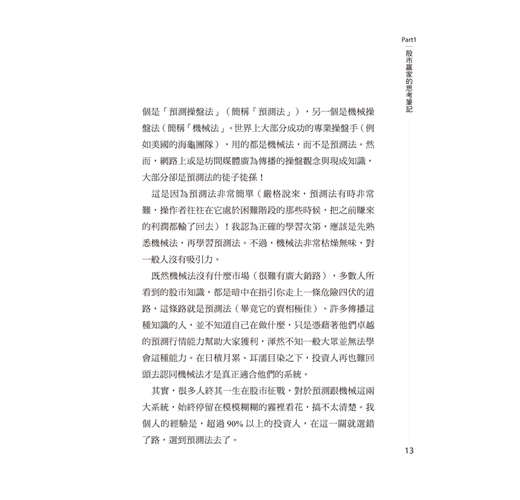 機械法跟預測法這兩種操盤觀念,在股市中極端重要,但是了解的人不多,所以我才寫了這本書。