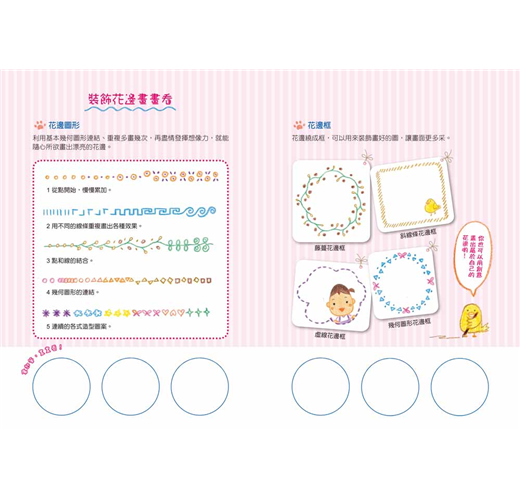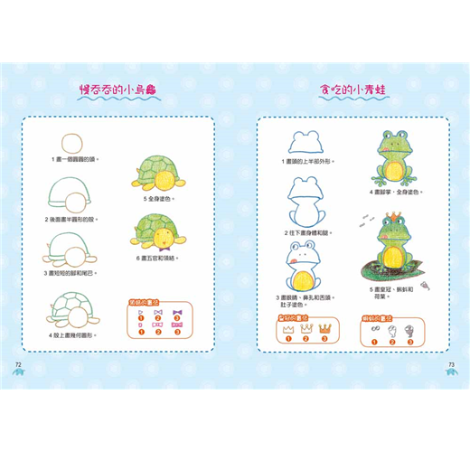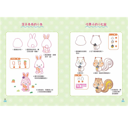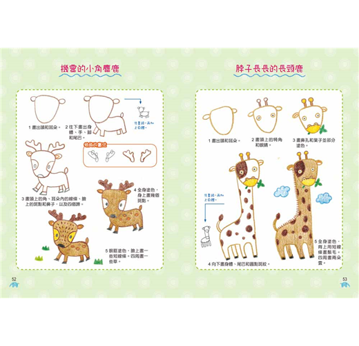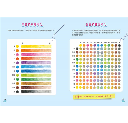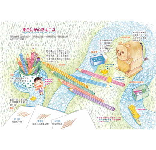 結合「教」、「學」同步的概念,重點示範圖後附有立刻練習園地,從模仿示範圖開始打基礎,上手後,自然能實現隨手創作個人專屬特色小圖的願望。